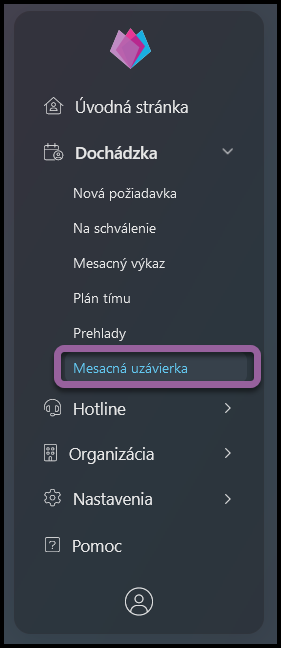 Prejdite na sekciu Dochádzku a vyberte Uzatvorenie mesiaca.